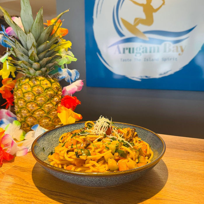 Arugam Bay offers a menu that balances seafood-forward starters and shareable bites with Sri Lankan-inspired comfort dishes such as kottu, plus stir-fried rice and noodle options that give familiar formats a different flavour profile. The starters are especially useful for building a table spread, from calamari and papadam to gyoza, halloumi fries and chilli-garlic paneer. With a drinks identity that leans into tropical cocktails and an events space available for private hire, it is set up for both casual evenings and planned get-togethers, with the menu structured to support either style of visit.