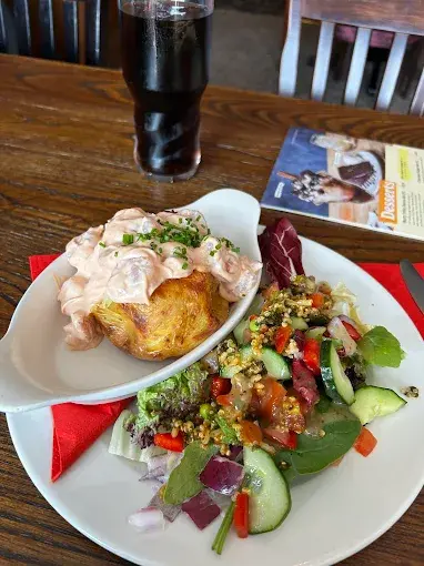 If you are choosing what to eat, the most strongly signposted direction is the pub classics approach. Burgers are one of the easiest fits within that style, offering a straightforward route to a filling main that works well at lunch or in the evening. The venue also references fish and chips as part of its menu identity, which is another staple choice if you want a traditional pub plate. Salads are mentioned too, offering an alternative for anyone who prefers something lighter while still ordering a main dish rather than picking only sides.